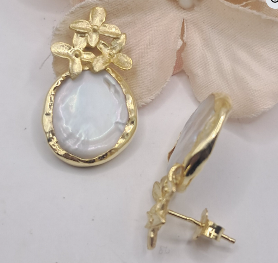 • Brincos em Prata Dourada com Pérolas