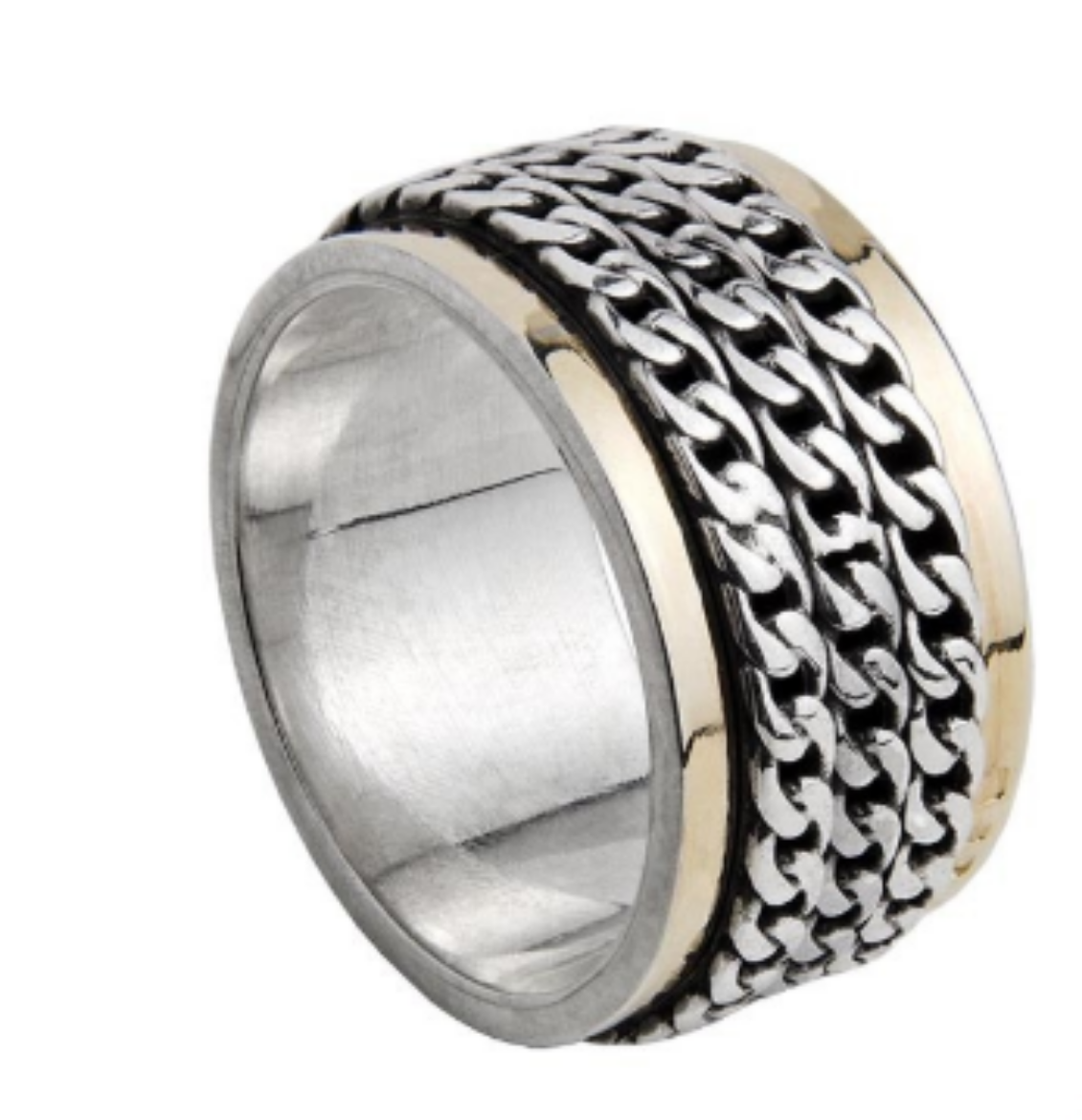 Anel em Prata com Ouro 9k e zircónias com 13mm