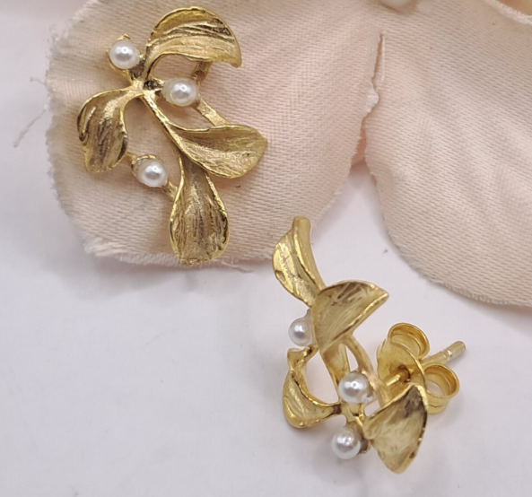 Brincos em Prata Dourada com Perolas