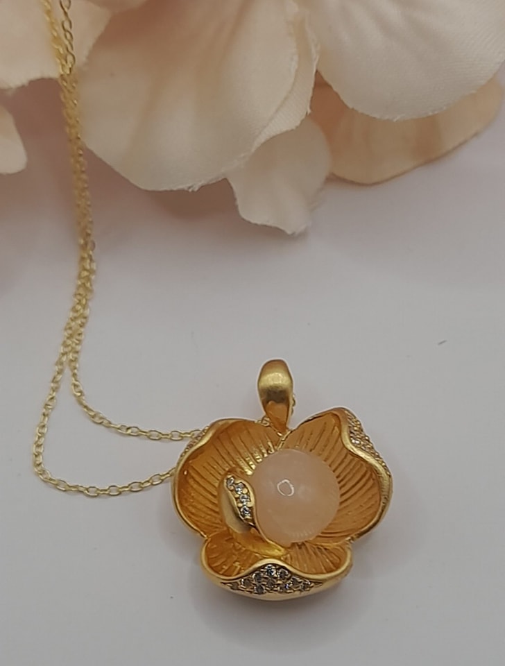 Fio em Prata Dourada com Pedra Natural e Zircónias com 45cm